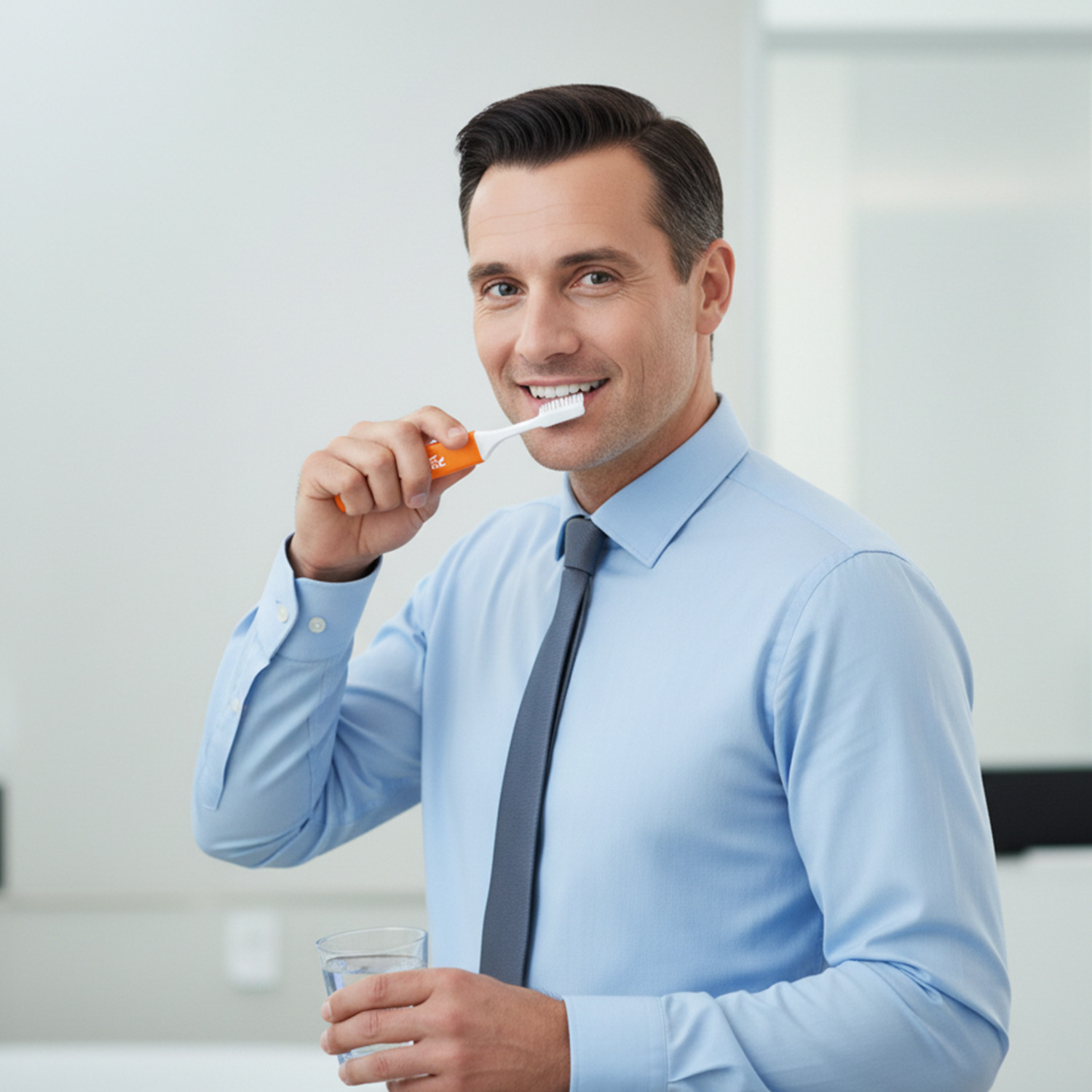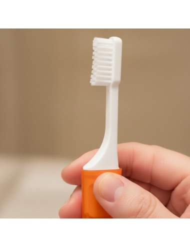 - Apply a pea-sized amount of toothpaste and brush for 2 minutes (morning & evening).