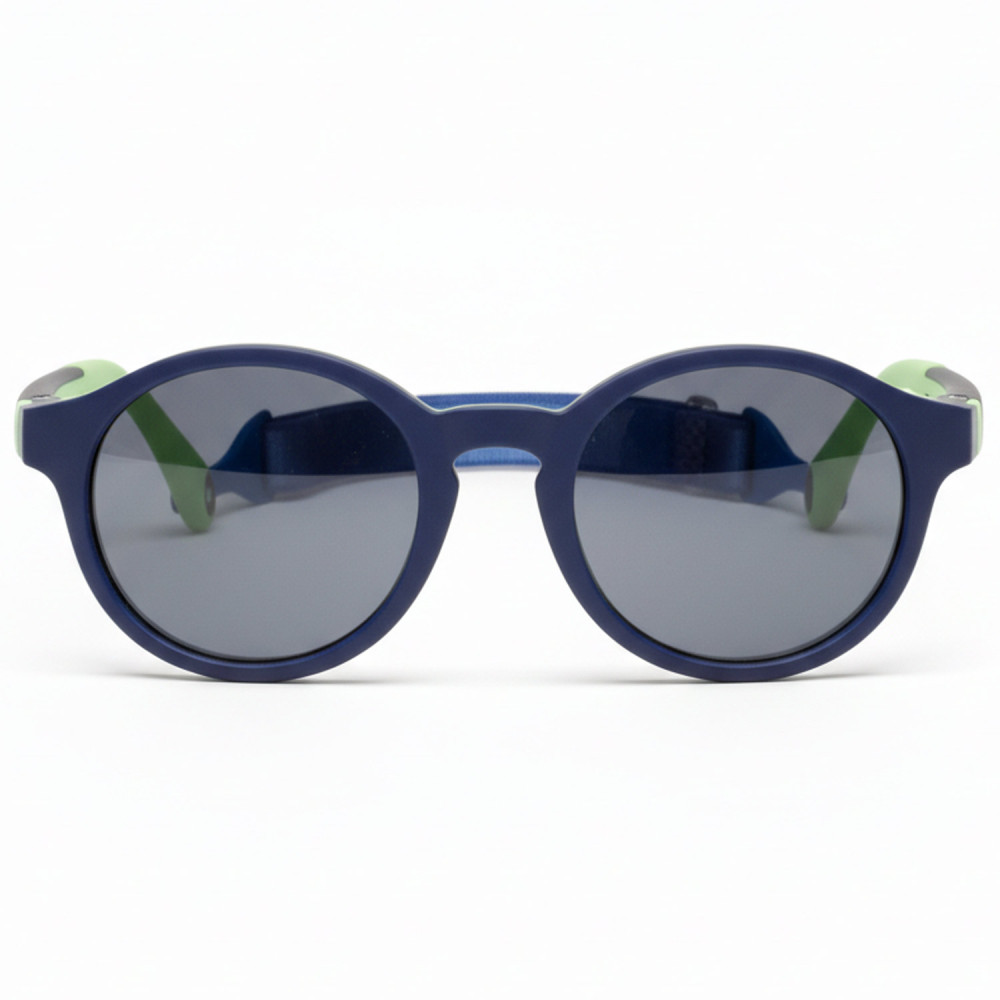 These navy blue sunglasses for children aged 2-4 years with a headband offer 100% UV protection (category 3) thanks to their tinted TAC lenses. Their durable nylon and TPE frame and adjustable elastic strap ensure stability and comfort during outdoor activities.