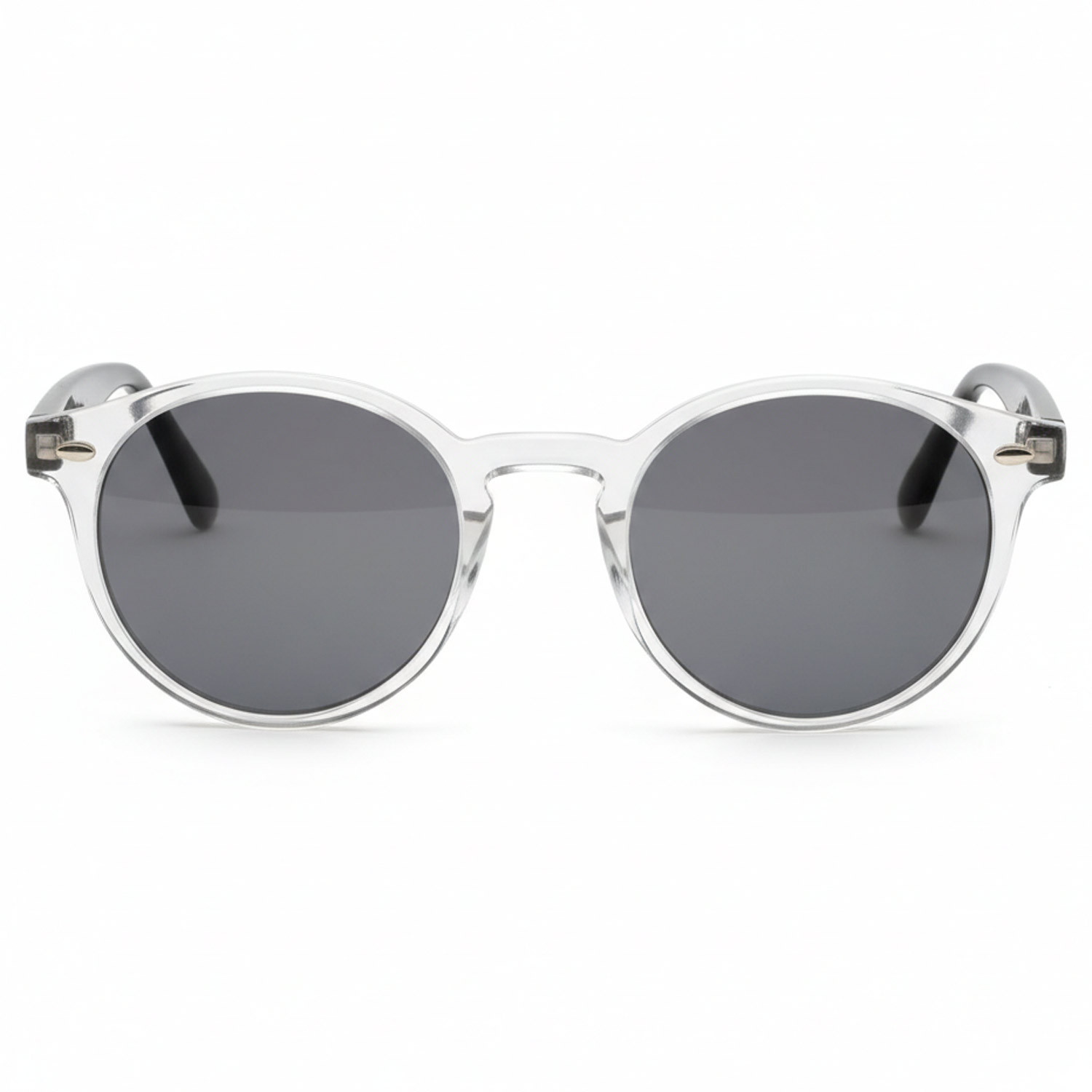 The round design offers a timeless touch, while the transparent finish paired with black temples creates a modern and trendy contrast. This unisex style is suitable for both girls and boys.