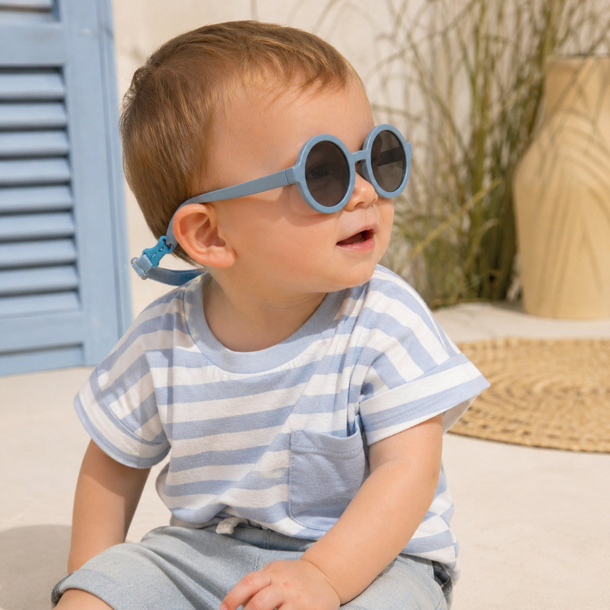 These round sunglasses for 1-2 year olds are designed to effectively protect the sensitive eyes of toddlers from their very first exposure to the sun. Thanks to their category 3 lenses, they filter intense light and reduce glare, ensuring comfortable vision.