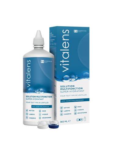 VITALENS is a solution for soft contact lenses. It is recommended for hydration and decontamination of your lenses on a daily basis. This lens product is perfect for sensitive eyes.