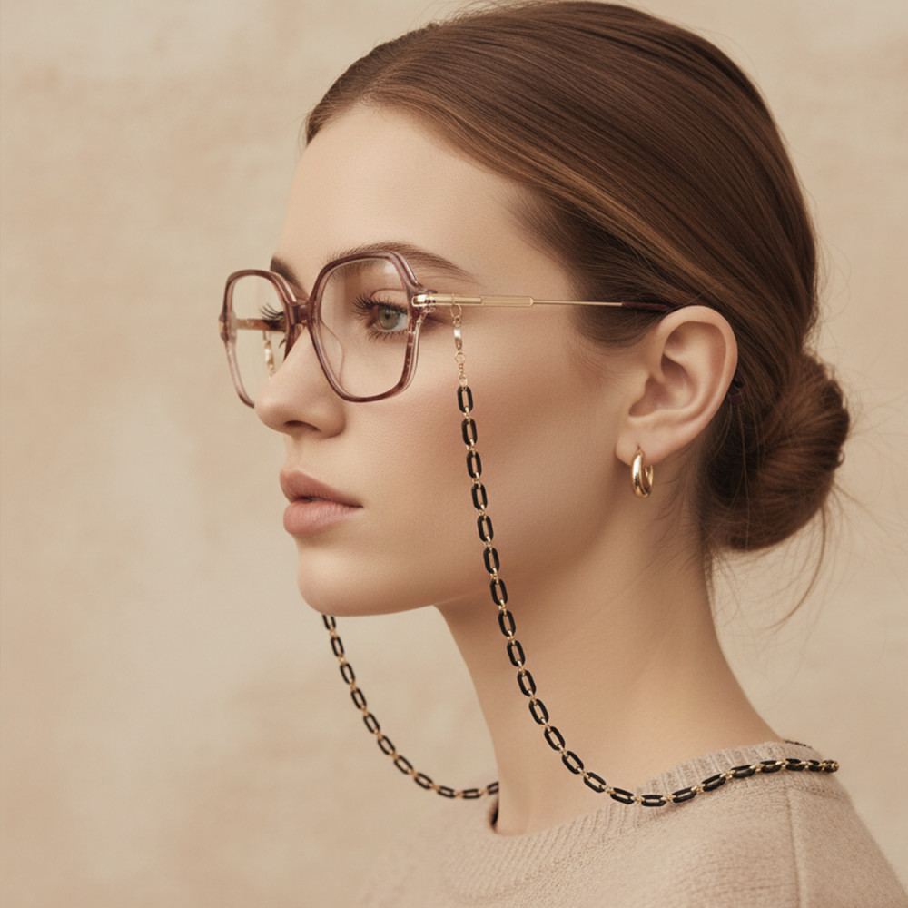The black and gold glasses chain is an accessory that combines elegance and functionality . It allows you to keep your glasses within easy reach while adding a refined touch to your style.