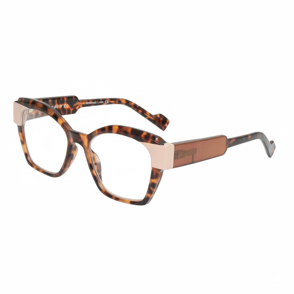 These rectangular reading glasses stand out thanks to a harmonious combination of tortoiseshell brown and beige tones. The subtle contrast adds depth to the frame while maintaining a clean, understated aesthetic, ideal for everyday wear both at home and at work.