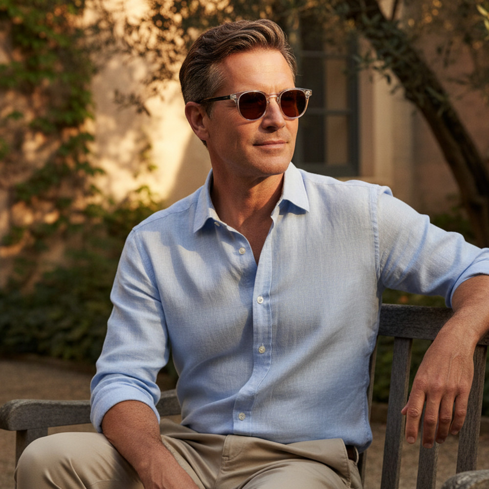 ACHILLE glasses are designed for men seeking a discreet yet assertive accessory. Their minimalist design allows them to be worn with both casual and more formal attire.