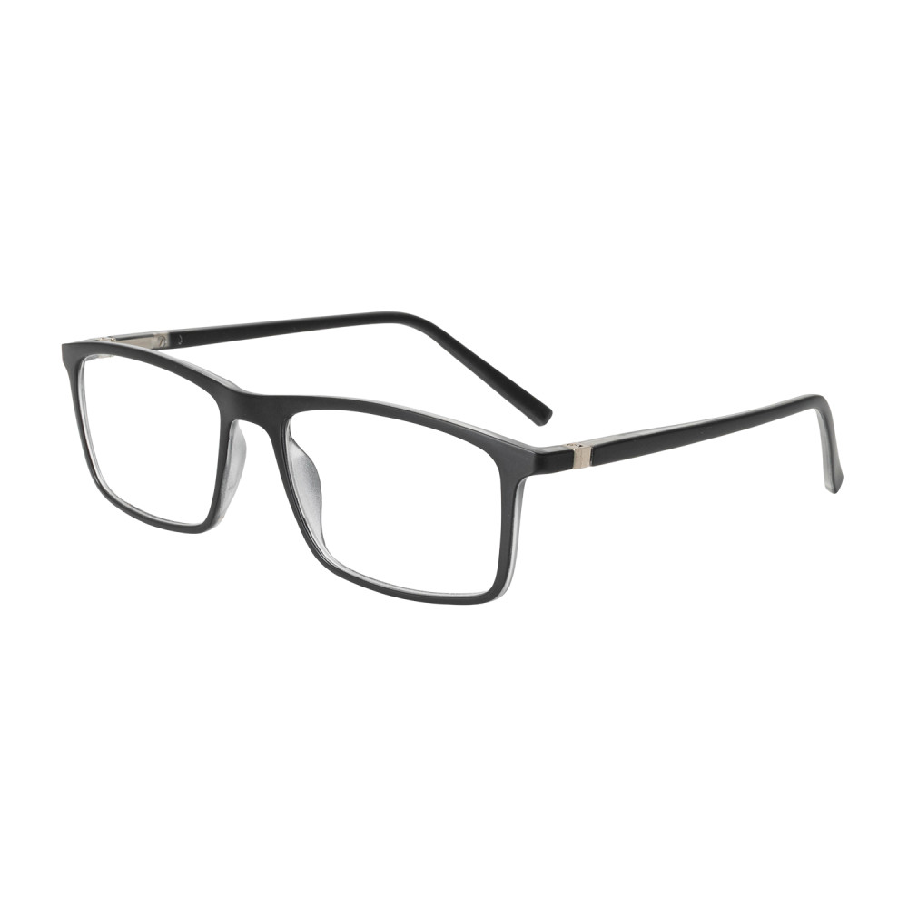 The PREVERT men's matte black reading glasses are rectangular frames equipped with a blue light filter and multi-distance corrective lenses. They improve near vision, reduce eye strain, and offer a structured, masculine style suitable for everyday wear.