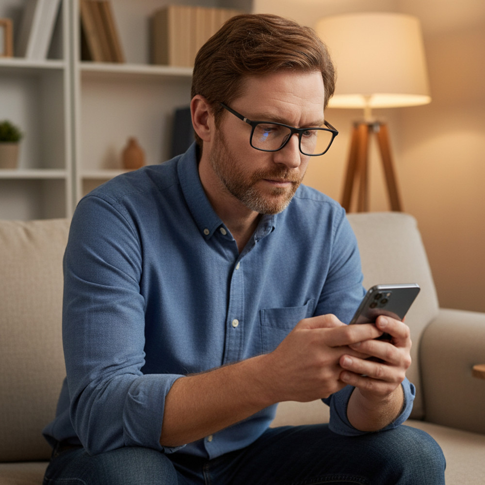 This model addresses the specific need to improve reading clarity while reducing discomfort caused by blue light from screens. It combines vision correction, protection, and masculine aesthetics.