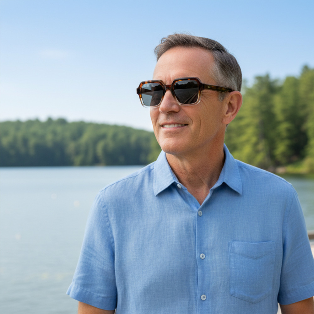 HELIOS unisex sunglasses were designed for those seeking the perfect balance between sun protection, comfort, and contemporary style. Their square frame creates a modern silhouette while remaining easy to wear every day.