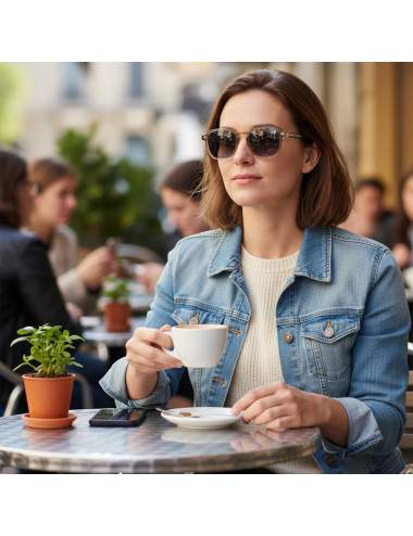 Thanks to its transparent crystal color, the WAVY model easily adapts to all clothing styles. It suits both women and men and stands out as a discreet and elegant sun accessory.