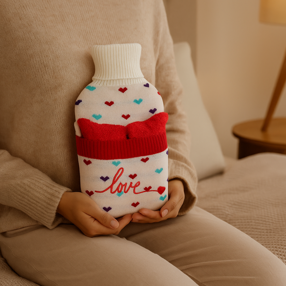 Bouillotte à eau PLIC duo chaussettes coeurs 2L