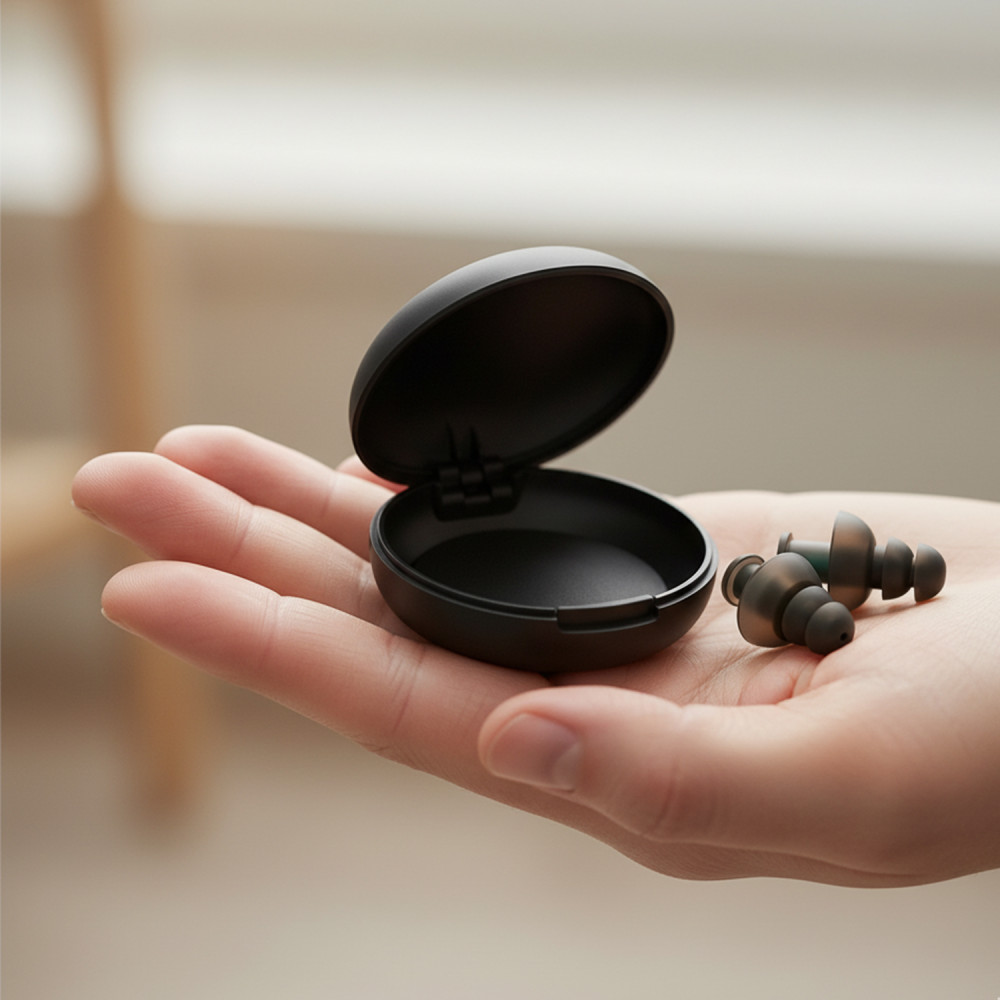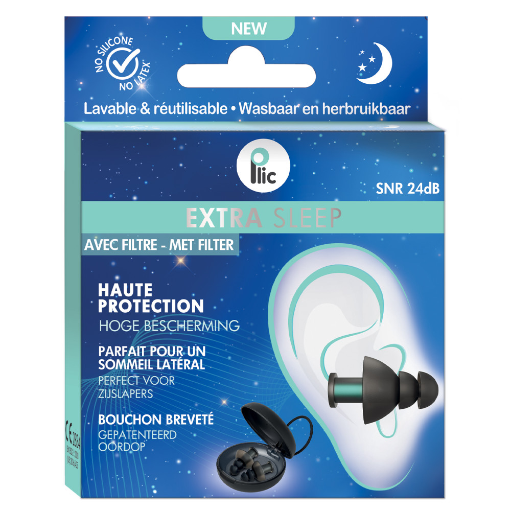 Endormez-vous plus facilement et restez dans votre bulle : bouchons PLIC AUDIO avec filtre acoustique, SNR 24 dB, confortables et étui de transport. Idéals pour le sommeil, le voyage et le repos.