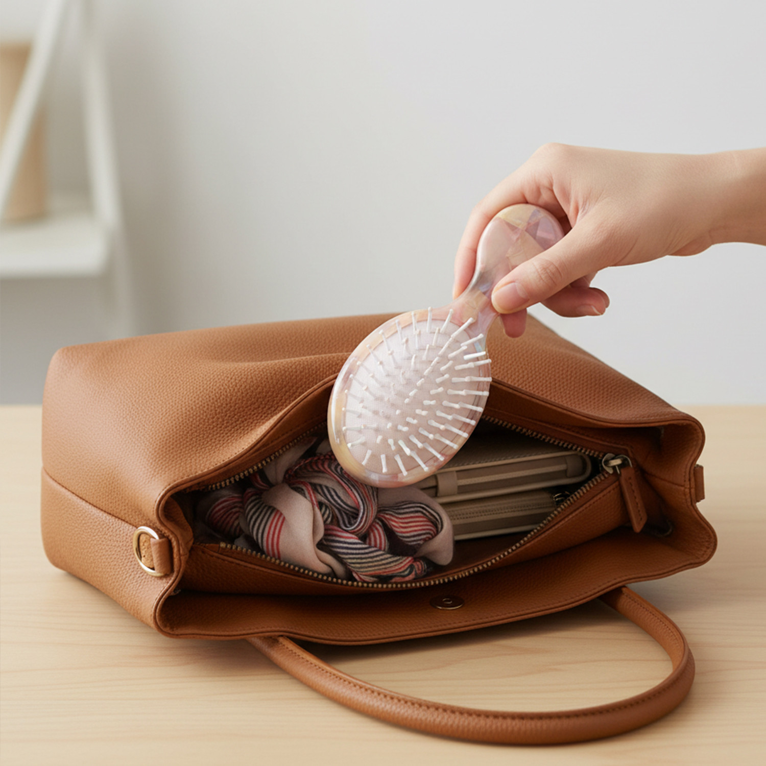 Avec ses 14 cm, cette brosse cheveux rose nacrée compacte s’intègre facilement dans un sac. Elle permet de se recoiffer à tout moment, sans compromis sur l’efficacité. Son design ergonomique assure une bonne prise en main malgré son format réduit.