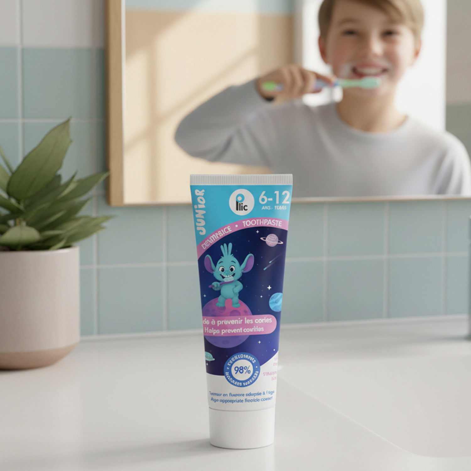 Ce dentifrice enfant 6–12 ans s’adresse aux enfants en phase de transition entre dents de lait et dents définitives. Il répond aux besoins spécifiques de cette tranche d’âge en matière de protection, de goût et de tolérance.