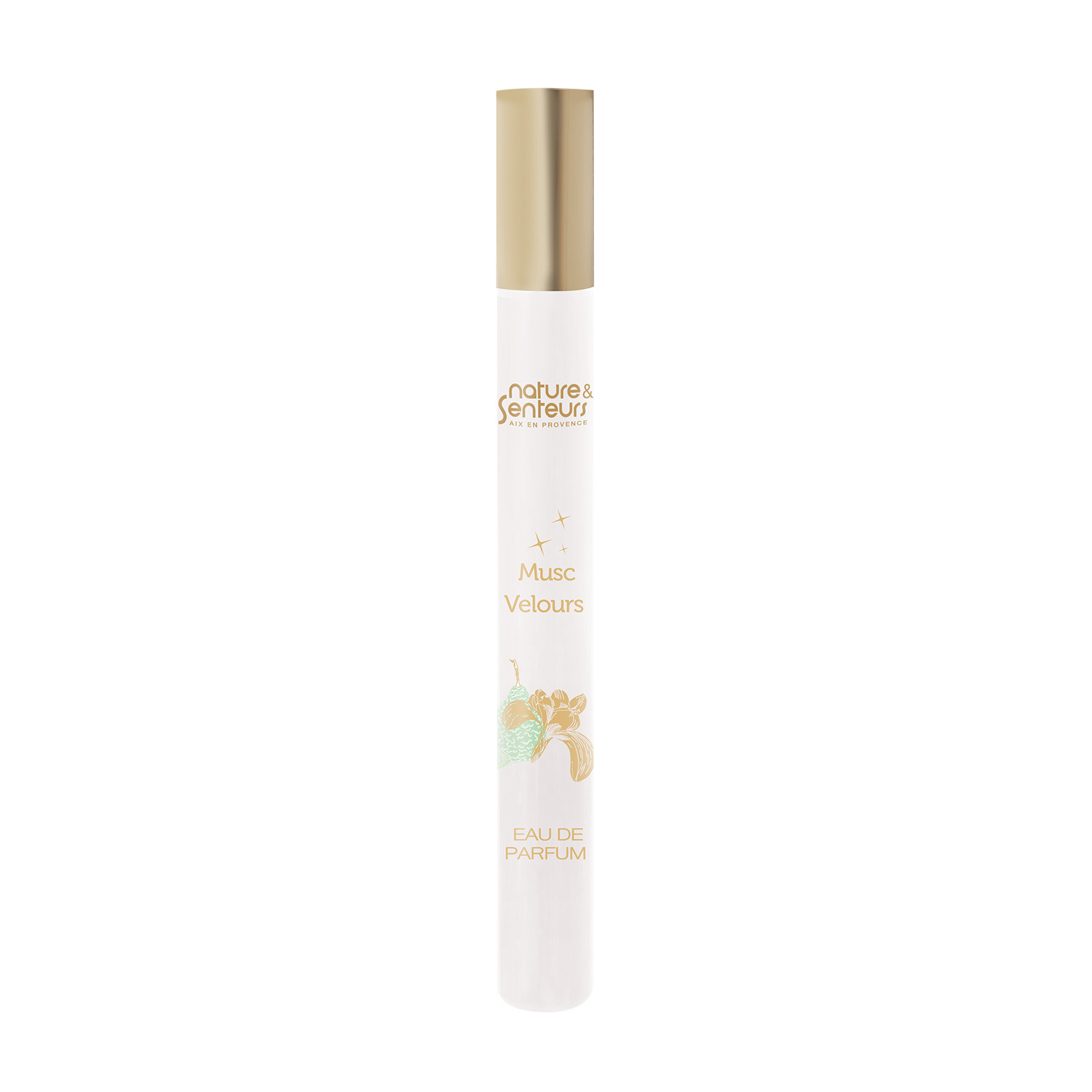 Laissez-vous envelopper par la caresse poudrée de Musc Velours, une eau de parfum florale et délicate au format nomade de 15ml, idéale pour des retouches parfumées tout au long de la journée.